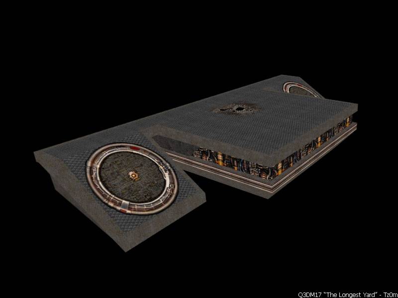 I love Quake 3, and who doesn't? So I decided to completely re-make the level "Q3DM17 - The Longest Yard" from Q3 for HL2 DM. I had abandoned this project three years ago. I have a lot of free time right now so I dug up the map and decided to resurrect it. All textures will be the original content from Q3, as I want to preserve that game's look so-to-speak. The textures will all be normal mapped as well. I will also be converting the few models used in this level for HL2 as well. The current screenshots are very old; from when I first started the map. In a day or two they will be replaced with newer ones. As stated to the right, the latest this map will be done is by the end of August, 2008. Enjoy.