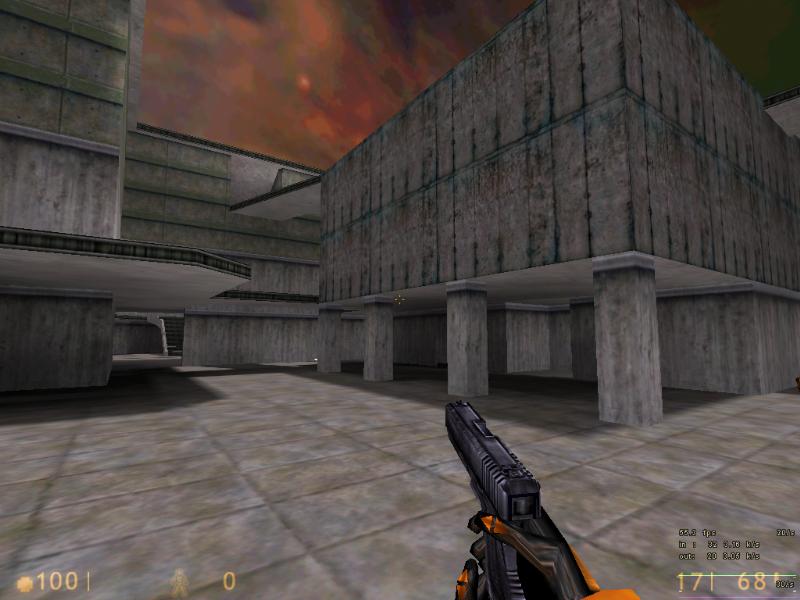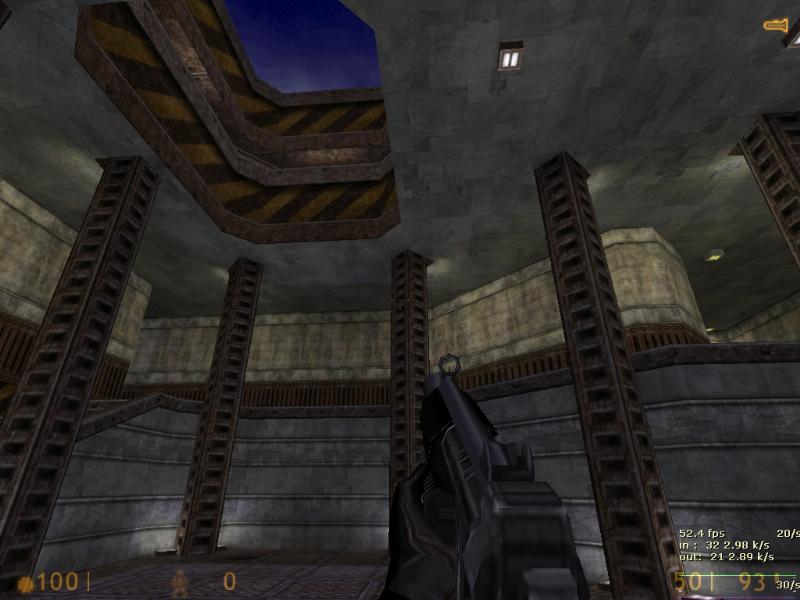 This is a medium-sized, fast-paced map that's fun for the whole family. There are six main areas interconnected with hallways and teleporters. All of the weapons except the snarks and hornetgun are included. Getting the egon is possible, but don't be cursing at me for tricking you to go after it. I made sure that the weapons are balanced, and that the ammo placement forces people to move around if they want the most out of the more powerful ones like the gauss and rpg. In my opinion, this kind of weapon/ammo placement provides the best deathmatch experience.