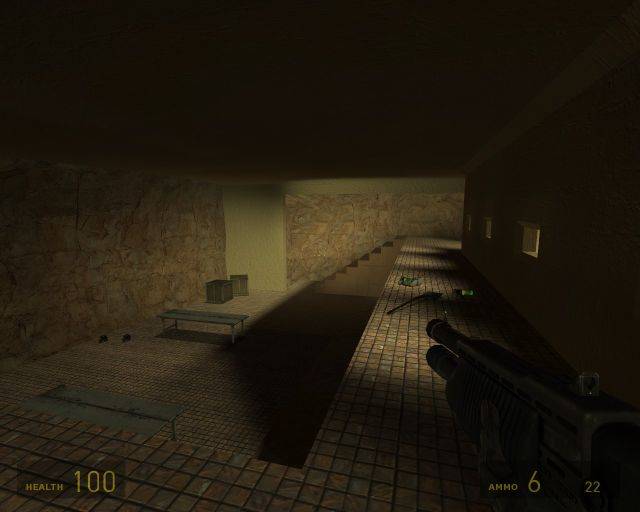 Set into an African cliffside above the Meddeterainian Ocean, Amadi is a striking mud brick settlement with plenty of Z-Axis action. Players will be encouraged to keep moving as ammunition is spread out across the map and often in areas that don't suit it's weapon. Amadi is currently in orangemap stages: basic geometry, developer textures, little to no detail, only one environmental light source, no cubemaps. It is purely for gameplay testing (best to get that sorted before you stick on the fancy stuff!) and will not stay in this state!