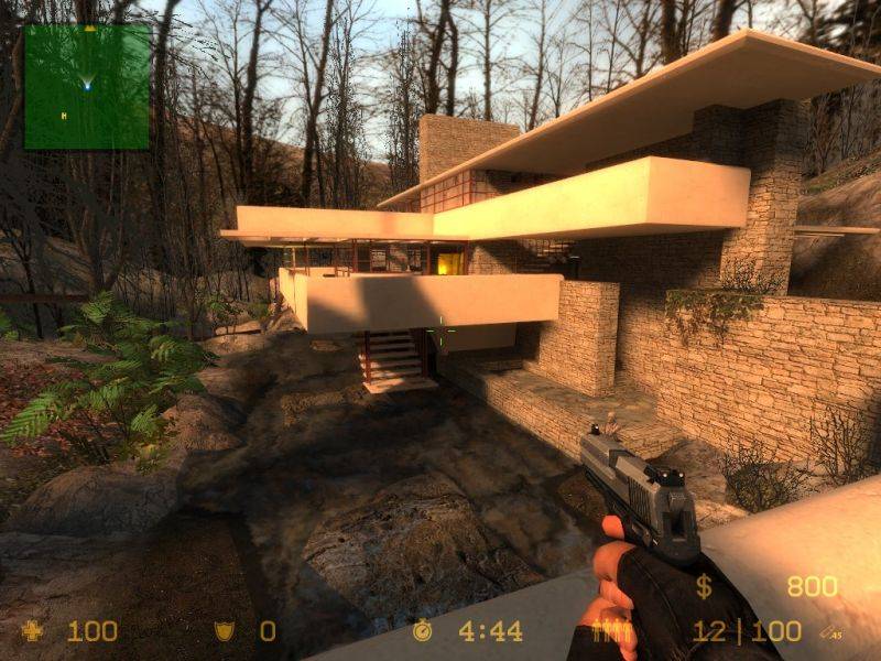 There are 4 hostages in the house. CT forces have the advantage of a quicker trip to the hostages, but terrorists can use the many terraces and exits of the house to take out the CTs. Due to the nature of the building, there are multiple ways to approach and defend the house, making each round different.