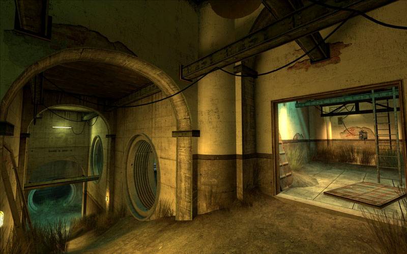 A small, symmetrical level that makes absolutely no sense in terms of theme! Think of it as a strange (and under-equipped) atrium between two factories, that is rather unfortunately built over an open sewer. The level was built for Mapcore's 1024 unit contest, in which all of the entries had to have their playable area confined to within a 1024 unit cube. Obviously there are areas of this map that extend beyond that, but they are clipped off to prevent player access. Sacrifices were made to the initial plans in order to get it done for the deadline, and while there are plenty of things about the level I'm not completely satisfied with, overall I think it turned out ok given the fairly short development time and small area restriction.