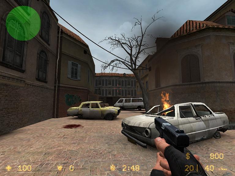 A CS:S urban map with a basic layout following de_dust style, trying to recreate battles in the middle of the streets.
